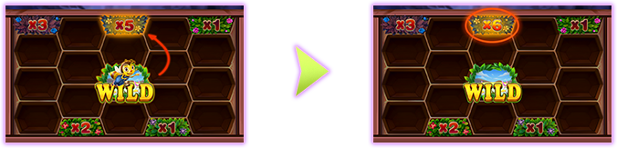 FREE GAME中では、特殊マルチプライヤーはリセットされず、FREE GAMEが終わるまで累計されます。