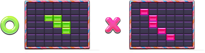 リール停止後、同じ図柄が連続で5つ以上揃うと、賞金を獲得します(斜めは無効)。 揃った図柄は消され、リールは上から図柄が落ちてきます。図柄が揃う限り継続し、終わるまで1 SPINとカウントします。 |
