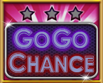 GOGO CHANCEランプが点灯すると、 揃うことを予告します。揃った図柄に応じて、BIG CHANCEまたはBONUS GAMEモードに突入します。 |