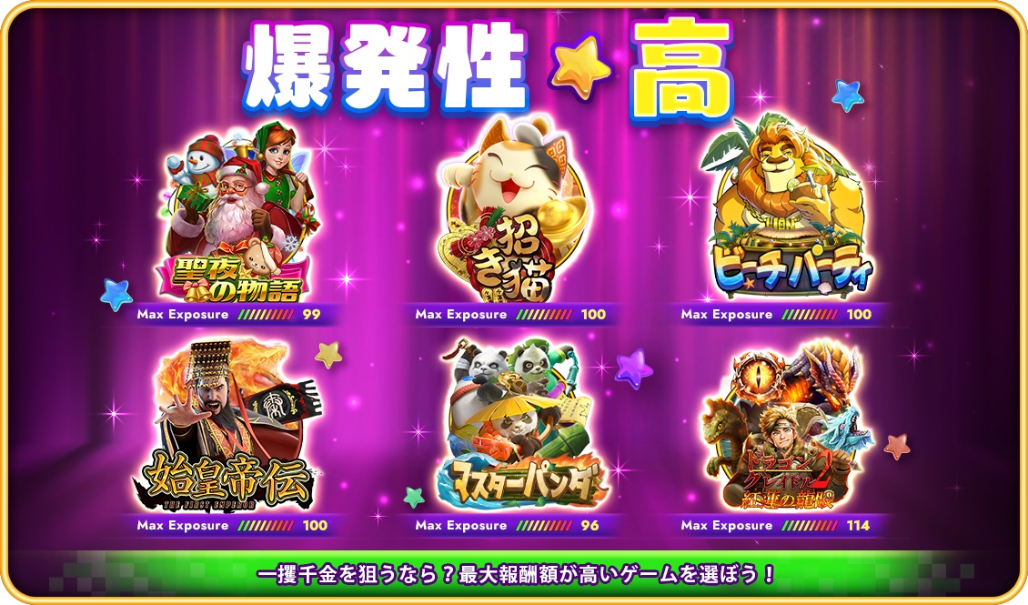 爆発性 は、基本的にそのスロットの「最大到達払い出し」です。