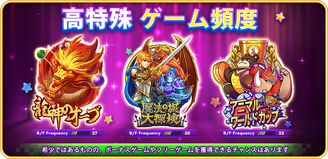 3️⃣ 特殊ゲーム頻度:ボーナスが出る頻度