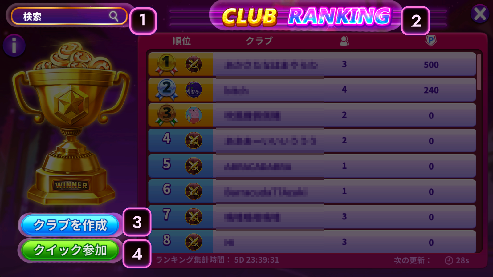 クラブランキング:チームを組んでクラブを強くしましょう!