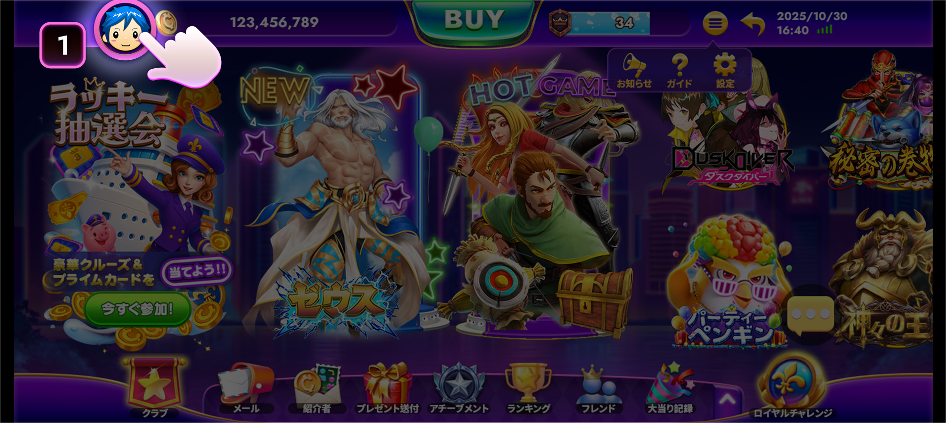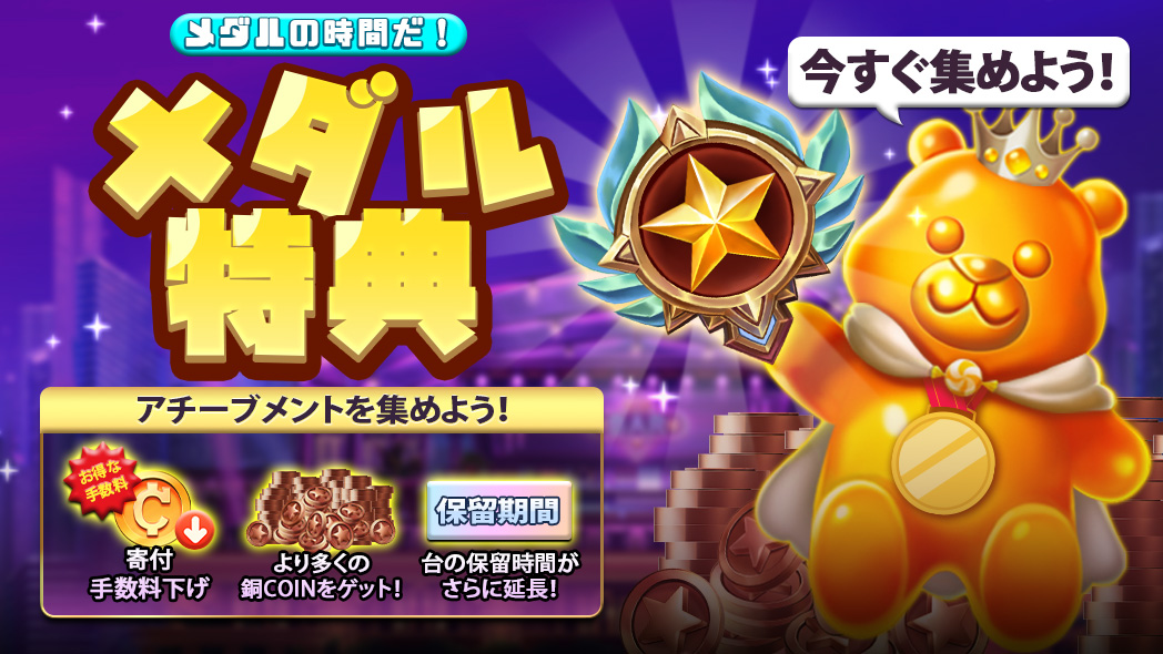 VIPレベルとメダル数を上げると、限定特典や機能をご利用いただけます。
